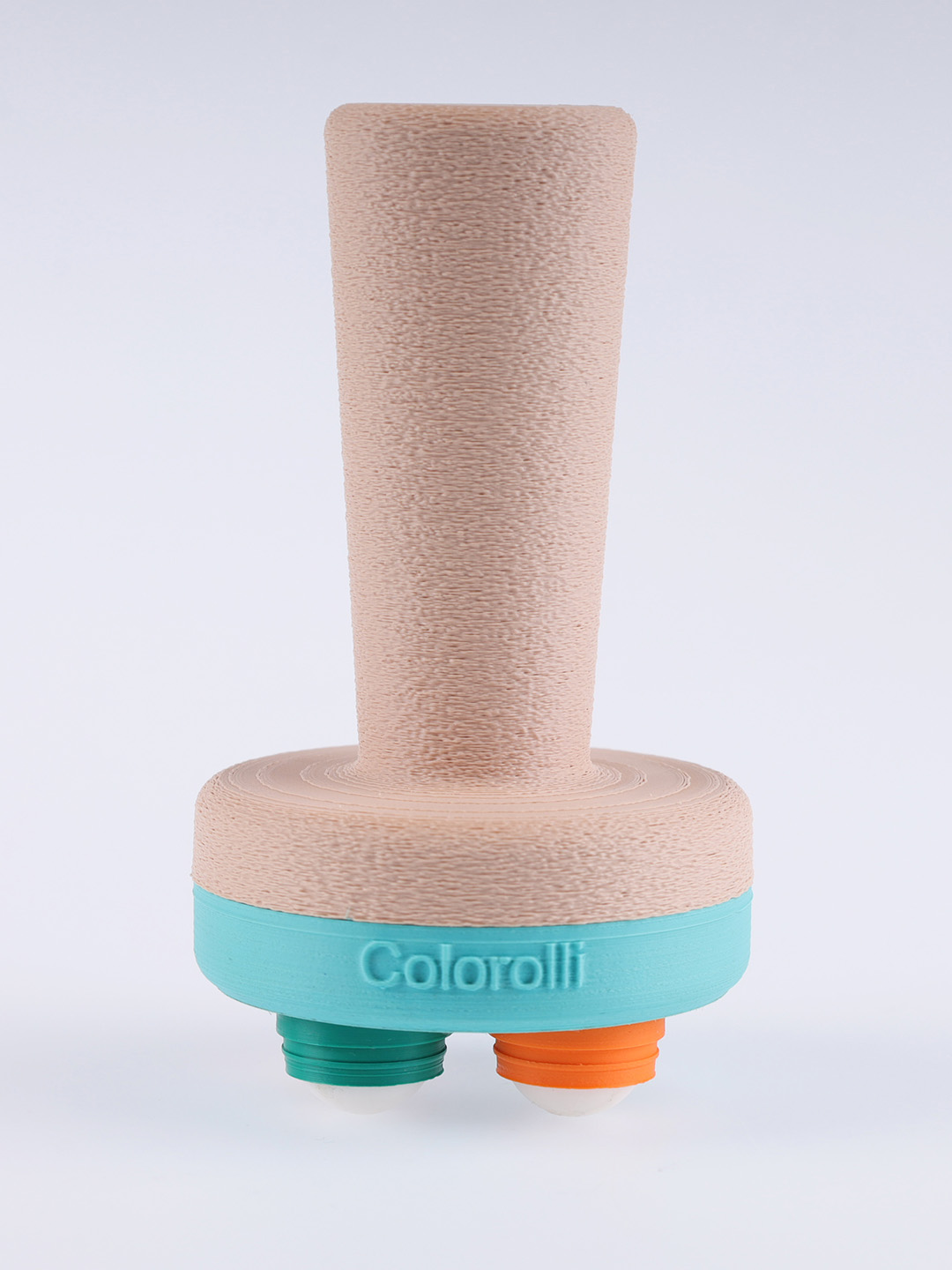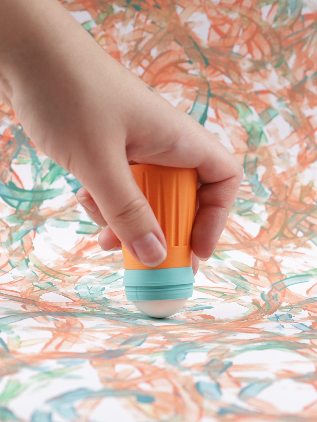 A Colorolli moduláris rajzoló-festő eszközcsalád, amely sajátos nevelési igényű, mozgássérült és finommotoros nehézséggel élő gyermekek számára készült. Az eltérő fogástípusokhoz igazodó kialakítás és a roll-on festőfej segíti a felszabadult alkotást és a grafomotoros készségek játékos fejlesztését.