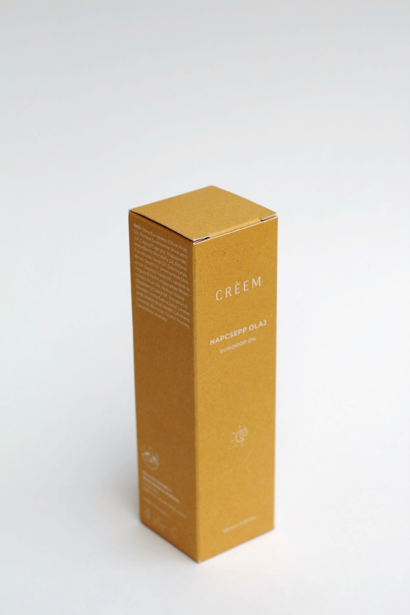 A CRÈEM 2023-ban alapított, családi skincare márka – működését saját termesztésű, lepárolt bio levendulaolajra építi. A Napcsepp Olaj csomagolási koncepciója a termékek alapanyagaira és eredetére reflektál, természetes karakterű, részben vagy teljesen újrahasznosított anyagok felhasználásával.