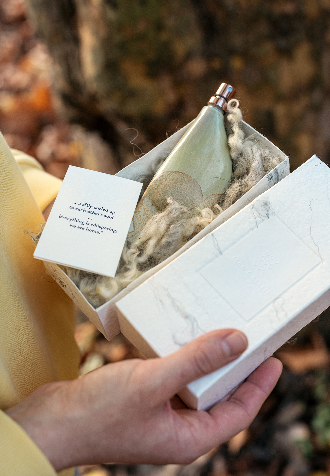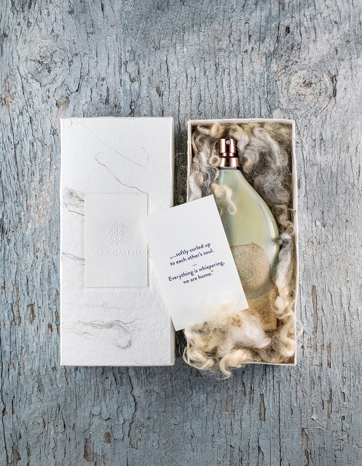 A Mar Galliti egy természetes, kézműves bőrápolási és botanikus parfümmárka, amelynek középpontjában a minőség, a helyi alapanyagok és az együttműködés áll. Legújabb botanikus parfümje, a Pillowtalk az illat és a csomagolás párhuzamos tervezési folyamatban jött létre: a színek, textúrák és az anyaghasználat mind az illat karakterét, történetét és a márkavilágot tükrözik. Az illatot Gyurokovics Zita és Szendeff Lőrinc alkotta, akik egyben az üveg, a doboz és a teljes csomagolás designkoncepciójáért is feleltek. A kerámia parfümös üveget Ruzicska Tünde keramikusművész készítette, míg a kézzel készült papír, valamint a dombornyomott és szitanyomott részletek Füzes Petra munkái.